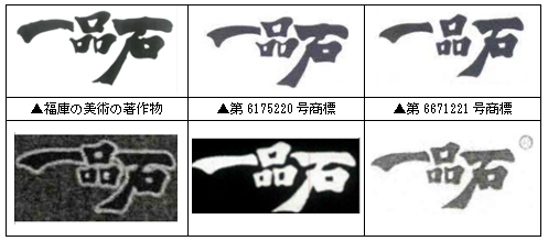2007年7月、広東省湛江市の住民である鄭某氏が、「電気圧力鍋」などの臺所用品について第6175220號商標(biāo)「一品石」の登録を出願し、同年8月に湛江市に某公司を設(shè)立した。2008年4月、鄭某氏は、別の第6671221號商標(biāo)「一品石」の登録を出願した。當(dāng)該商標(biāo)は前の商標(biāo)とは若干フォントが異なるものであり、著作権図面および本件の関連標(biāo)章は、以下の添付寫真で示すとおりである。
