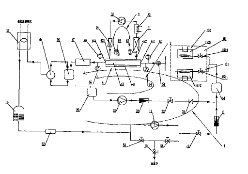 本發(fā)明涉及一種管內(nèi)制冷劑含油蒸發(fā)/冷凝傳熱測(cè)試一體裝置及其測(cè)試方法,裝置的特征是包括通過(guò)管道順序連接的冷凝器、回收罐、動(dòng)力泵、調(diào)節(jié)閥、制冷劑質(zhì)量流量計(jì)、均勻調(diào)和槽、蒸發(fā)預(yù)熱/冷凝預(yù)熱并聯(lián)選擇通路、蒸發(fā)/冷凝測(cè)試段、加熱器、高效油分離器、冷凝器的制冷劑回路;通過(guò)管道順序連接的高效油分離器、貯油器、高壓油泵、潤(rùn)滑油質(zhì)量流量計(jì)、控制閥、均勻調(diào)和槽、蒸發(fā)預(yù)熱/冷凝預(yù)熱并聯(lián)選擇通路、制冷劑蒸發(fā)/冷凝測(cè)試段、加熱器、高效油分離器的潤(rùn)滑油注油回路;以及通過(guò)管道順序連接的換熱器、水加熱器、水泵、水質(zhì)量流量計(jì)的蒸發(fā)/冷凝測(cè)試段換熱回路。可進(jìn)行不同制冷劑管內(nèi)蒸發(fā)冷凝傳熱測(cè)試和制冷劑含油率對(duì)換熱管蒸發(fā)冷凝傳熱特性影響測(cè)試,方便、可靠。 |