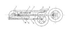 38 | 實(shí)用新型 | 便攜式自行車(chē) | 一種便攜式自行車(chē),它由已有的鏈條傳動(dòng)自行車(chē)改為齒輪傳動(dòng),右腳蹬拐上的驅(qū)動(dòng)彈片,驅(qū)動(dòng)主動(dòng)齒輪,通過(guò)前傳動(dòng)齒輪,傳動(dòng)軸和后傳動(dòng)齒輪驅(qū)動(dòng)后車(chē)輪向前動(dòng)轉(zhuǎn),齒輪傳動(dòng)的目的是提高傳動(dòng)速度比,使前后車(chē)輪縮小,在傳動(dòng)速度為1∶15時(shí)前后輪的半徑縮小為90mm,速度可保持30公里/ 小時(shí)。車(chē)體為多向折疊。支撐部分順承重架折疊,車(chē)把腳蹬橫向折疊,通過(guò)車(chē)體的簡(jiǎn)化縮小和折疊,使便攜式自行車(chē)能攜帶,易存放。 | ![]() |