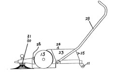 40 | 實(shí)用新型 | 手推式掃地車(chē) | 一種手推式掃地車(chē),它屬于一種掃地工具,尤其是一種人力手推、機(jī)械運(yùn)動(dòng)對(duì)地面進(jìn)行清掃的手推式掃地車(chē)。本實(shí)用新型旨在解決現(xiàn)有清掃工具各自存在的適用范圍窄、成本昂貴、耗費(fèi)人力、清掃效果差的缺陷,其技術(shù)方案是:該掃地車(chē)包括機(jī)殼(28)、扶手(29)、垃圾存儲(chǔ)箱(23)、主動(dòng)滾輪(13)、滾刷(14、15),滾刷(14、15)位于機(jī)殼(28)內(nèi),滾刷軸與位于其兩側(cè)的主動(dòng)滾輪(13) 軸齒連接,主動(dòng)滾輪(13)的轉(zhuǎn)動(dòng)帶動(dòng)滾刷(14、15)運(yùn)轉(zhuǎn),垃圾存儲(chǔ)箱(23)位于滾刷(15)后方,為增強(qiáng)清掃效果在機(jī)殼前方還設(shè)置有一對(duì)向內(nèi)旋轉(zhuǎn)的盤(pán)刷。 | ![]() |