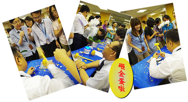 特別布置的活動主會場,同樣在藍色與白色的交融中,詮釋著節(jié)日的歡樂。而為慶典特別設計的“砸金蛋、贏大獎”活動,則充滿挑戰(zhàn)和趣味,吸引了眾多同事的響應和參與——尋找金蛋的過程充滿了欣喜和快樂,金蛋里的問題讓我們重溫集佳成長歷程,而金蛋中的大獎,則帶給大家一份驚喜和幸運,共同分享集佳18周年慶典的喜悅。活動現場氣氛熱烈、高潮跌宕,同事們紛紛合影留念,定格這美好瞬間。