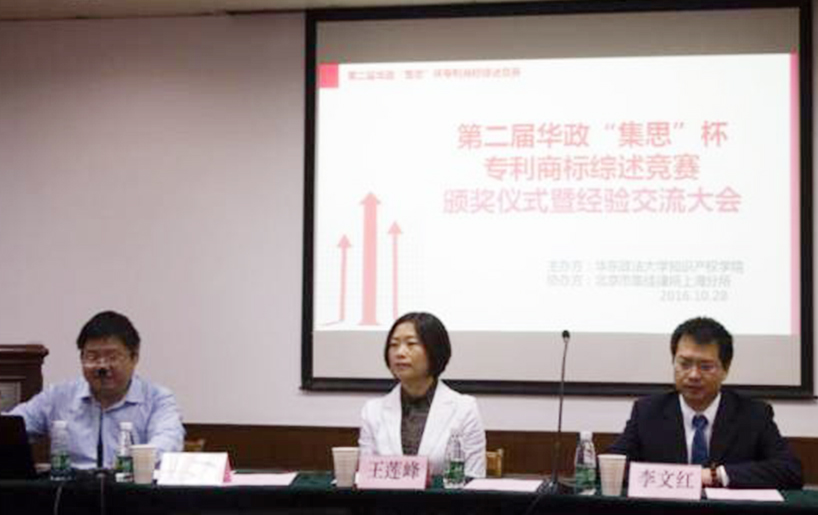 由華東政法大學知識產(chǎn)權(quán)學院主辦、北京市集佳律師事務所上海分所提供支持的第二屆“集思”杯專利商標綜述競賽圓滿落下帷幕,2016年10月28日,競賽頒獎儀式暨經(jīng)驗交流大會在華東政法大學舉行。