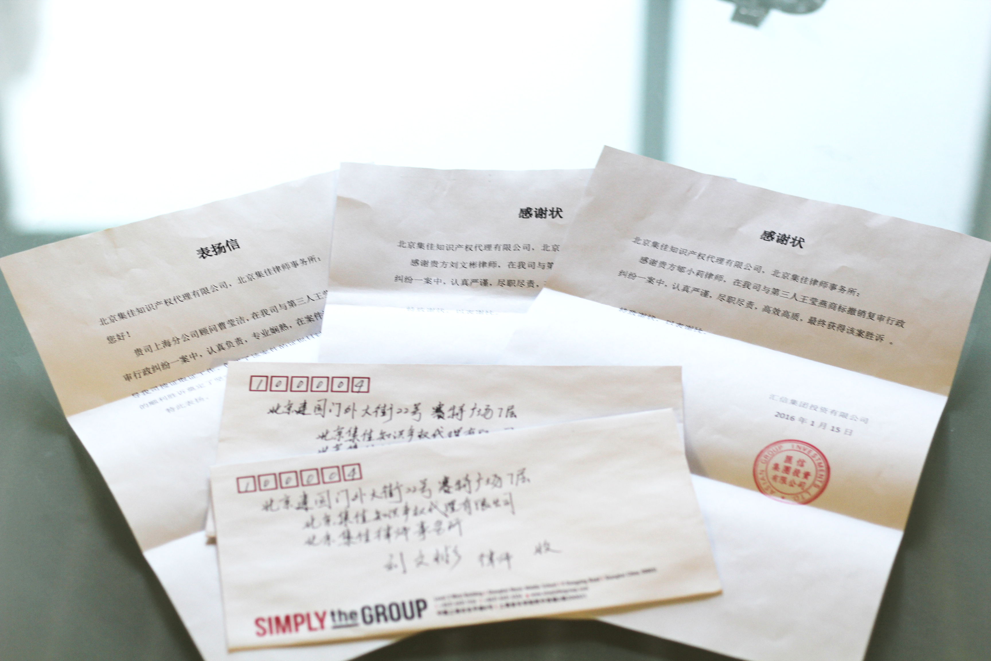 近日,集佳收到匯信集團(tuán)投資有限公司寄來(lái)的感謝狀,為辭舊迎新的2016增添喜氣,也為優(yōu)秀的律師團(tuán)隊(duì)點(diǎn)個(gè)贊!
