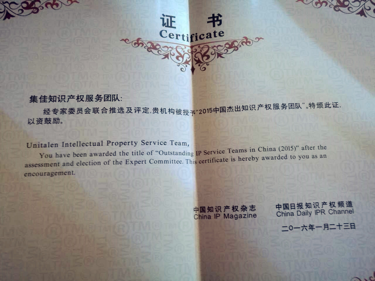 集佳榮獲“2015中國(guó)杰出知識(shí)產(chǎn)權(quán)服務(wù)團(tuán)隊(duì)”