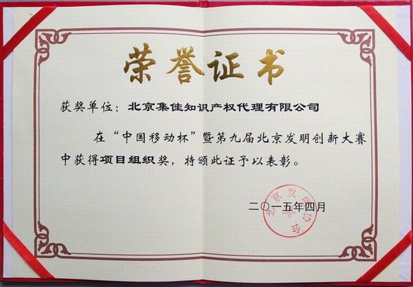 4月15日,北京發(fā)明協(xié)會(huì)成功舉辦了“中國(guó)移動(dòng)杯”暨第九屆北京發(fā)明創(chuàng)新大賽頒獎(jiǎng)會(huì),集佳在本次大賽中榮獲“項(xiàng)目組織獎(jiǎng)”。