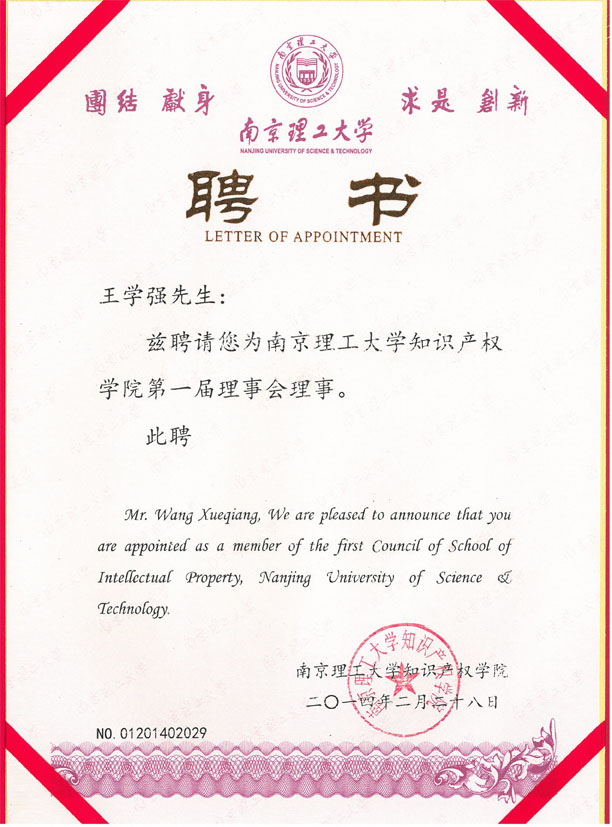 2月28日,由工業(yè)和信息化部、國(guó)家知識(shí)產(chǎn)權(quán)局和江蘇省人民政府共建的南京理工大學(xué)知識(shí)產(chǎn)權(quán)學(xué)院,在南京揭牌并成立首屆理事會(huì)。在理事會(huì)成立大會(huì)上,集佳合伙人王學(xué)強(qiáng)受聘為第一屆理事會(huì)理事。