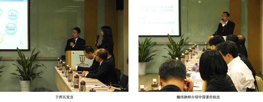 于所長(zhǎng)對(duì)日本知識(shí)產(chǎn)權(quán)協(xié)會(huì)及研修班成員的到來(lái)表示歡迎,并向大家簡(jiǎn)要介紹了集佳概況。之后,應(yīng)日本知識(shí)產(chǎn)權(quán)協(xié)會(huì)的邀請(qǐng),由集佳資深知識(shí)產(chǎn)權(quán)律師魏煒結(jié)合典型案例,為研修班成員系統(tǒng)介紹了中國(guó)著作權(quán)法的相關(guān)內(nèi)容。