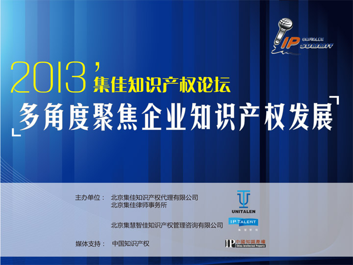 “2013’集佳知識(shí)產(chǎn)權(quán)論壇——多角度聚焦企業(yè)知識(shí)產(chǎn)權(quán)發(fā)展”將于2013年10月17-18日在北京日壇賓館報(bào)告廳舉辦,誠(chéng)邀企業(yè)界代表參加。