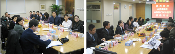 2011年12月22日,北京市委巡視組一行,在市知識產(chǎn)權(quán)局副局長王淑賢、付曉輝等領(lǐng)導(dǎo)的陪同下,到集佳知識產(chǎn)權(quán)代理有限公司考察調(diào)研,集佳合伙人會議主席于澤輝所長、李德山副所長、李雷副所長和梁巖部長迎接考察組一行,并出席了交流座談會。