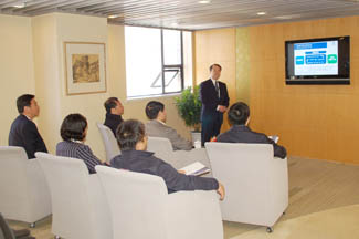 洪峰副市長等領(lǐng)導(dǎo)聽集佳于澤輝所長匯報工作