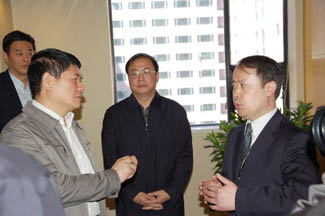 洪副市長面帶笑容聽取匯報 洪副市長與集佳于所長進(jìn)行交流