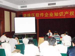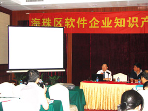 一直以來,區(qū)內(nèi)大部分軟件企業(yè)的軟件產(chǎn)品都是以登記著作權(quán)進(jìn)行保護(hù),為了指導(dǎo)企業(yè)運(yùn)用專利權(quán)保護(hù)軟件的核心內(nèi)容,有效維護(hù)軟件企業(yè)的權(quán)益,海珠區(qū)知識產(chǎn)權(quán)局特舉辦了本次活動。廣州市知識產(chǎn)權(quán)局吳岳靜局長、楊抗帝巡視員,海珠區(qū)政協(xié)副主席、知識產(chǎn)權(quán)局劉金鵬局長,廣州市軟件協(xié)會姚柳森副秘書長以及區(qū)知識產(chǎn)權(quán)局相關(guān)人員,轄區(qū)內(nèi)近20家軟件企業(yè)和相關(guān)科技園區(qū)的負(fù)責(zé)人出席參加了本次活動。