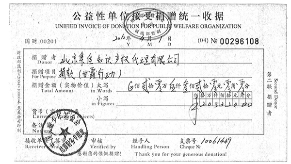 災(zāi)情告急!飲水告急!3月29日,為了幫助災(zāi)區(qū)的同胞共同抗旱,幫助災(zāi)區(qū)的孩子們解決飲水困難,集佳向所有員工發(fā)起了抗旱救災(zāi)的倡議,倡議在短短兩天內(nèi)就得到了330余名員工的積極參與,在公司領(lǐng)導(dǎo)的帶動下,共募集到20余萬元的善款,并于4月1日由員工代表交至中國兒童少年基金會,參與該基金會發(fā)起的“甘霖——為旱區(qū)孩子送水公益行動”。截止目前,根據(jù)中國兒童少年基金會的統(tǒng)計,集佳的捐贈成為該會到賬捐款數(shù)額最多的企業(yè)。
