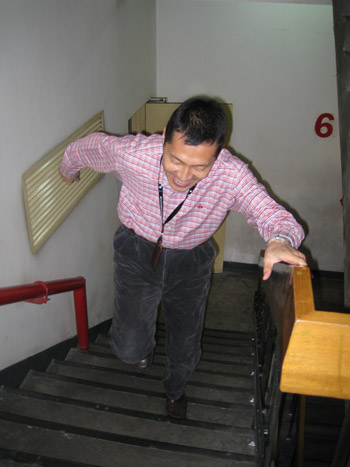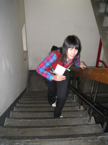 本次爬樓比賽采取兩人一組的形式進行,隨著裁判員一聲令下,集佳健兒便奮力猛沖,開始了體能大比拼??粗麄冚p盈的身影,后面等待的選手便不由自主地充當起了啦啦隊,歡呼雀躍,為他們鼓掌加油。比賽中,選手們奮力拼搏,也互相幫助,雖然爬樓不算大運動量的體育活動,但全程11層的樓梯爬起來也并非易事,即使是這樣,每一名選手都堅持到了終點。由于本次比賽的初衷就是建議大家環(huán)保節(jié)能,“少乘電梯,多爬樓梯”,因此賽前組織者就在樓梯間張貼了環(huán)保小貼士。選手們在爬樓過程中也不忘學習樓道中提示的環(huán)保小常識,在最后的環(huán)保題目小測驗中,各隊表現(xiàn)都十分出色,幾乎全部答對。