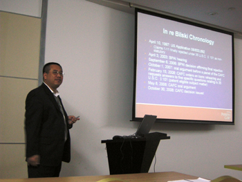 2008-12-0211月28日下午,張江高科技園區(qū)系列知識產(chǎn)權(quán)講座第六講在上海浦東新區(qū)張江藥谷大廈如期舉行。本次講座由美國博欽律師事務(wù)所駐洛杉磯代表處律師唐磊擔(dān)任主講,就Bilski案例與商業(yè)方法專利,為在場20余家企業(yè)相關(guān)從業(yè)人員做了精彩解析。
