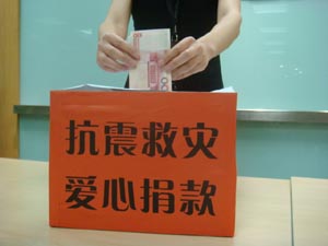 根據(jù)每個(gè)人的實(shí)際情況,量力而行,為災(zāi)區(qū)的同胞表達(dá)一份關(guān)切,貢獻(xiàn)一份愛(ài)心。根據(jù)目前災(zāi)區(qū)情況,不適宜捐助物品,只接受捐款,大家以部門(mén)為單位組織捐款。