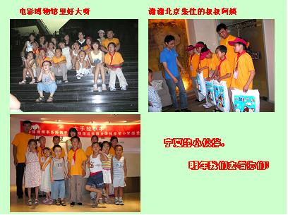 為了減少孩子們對新環(huán)境的害羞和陌生感。集佳律師事務(wù)所特意安排了年齡相仿的7名律師子女的孩子作為寧夏小朋友的陪同小伙伴。一路上孩子們相互了解,相互關(guān)照,北京的小朋友主動的承擔起小導游,為寧夏小伙伴介紹新北京,新奧運。歡歌笑語聲中,羞澀的寧夏小朋友也在不知不覺中拋開了膽怯和陌生,臉上綻放出燦爛的笑容。