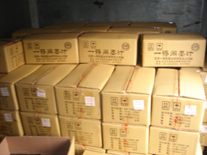 接到委托后,集佳立即組織調(diào)查維權(quán)部專案律師,前往案發(fā)地區(qū),再一次核實(shí)了侵權(quán)事實(shí),并準(zhǔn)備了完整的證據(jù)材料,向山東省臨沂市工商行政管理局投訴。該局分析案情后,決定與山東省臨沂市公安局,開展一場(chǎng)聯(lián)合執(zhí)法行動(dòng)。次日,由多名工商局和公安局組成的聯(lián)合執(zhí)法大隊(duì),在投訴人的帶領(lǐng)下,徑直前往侵權(quán)企業(yè),經(jīng)過一番仔細(xì)搜查,發(fā)現(xiàn) “一得閣”墨汁115箱,標(biāo)識(shí)近600個(gè),包裝盒近400個(gè),商品說明書100份,經(jīng)過一得閣公司技術(shù)負(fù)責(zé)人現(xiàn)場(chǎng)鑒定,以上查扣物品均為假冒侵權(quán)貨品。鑒于此,工商執(zhí)法人員,立即對(duì)以上侵權(quán)貨品予以查扣。據(jù)代理律師透露,該案的涉案較高,工商行政管理部門在對(duì)侵權(quán)人依法做出行政處罰的同時(shí),依職權(quán)可將案件移交公安機(jī)關(guān)以追究侵權(quán)人的刑事責(zé)任。目前,該案在進(jìn)一步的審查處理過程中。(以下為現(xiàn)場(chǎng)拍攝下來的侵權(quán)產(chǎn)品)