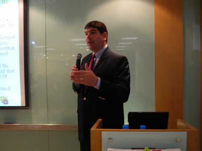 另一講座的專家是來自鹽湖城的律師事務所,該所是鹽湖城最大的知識產權事務所。與上一律師事務所演講內容互為補充,該所專家側重介紹了美國專利實踐中的最新發(fā)展,美國專利改革的現(xiàn)狀,專利賠償金額情況,尤其是通過分析典型案例對美國專利審查的新動向作了詳細地說明,具有重要的實踐指導作用。