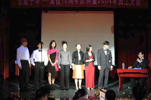 我們自編自演的文藝節(jié)目是本次慶典的重頭戲,在3個半小時里,共有來自總部各部門及辦事處的23個節(jié)目、230人次登場,節(jié)目精彩紛呈,花樣繁多,在場的所有人都被這臺超高水準的表演折服了,迭起的掌聲、絢麗的熒光交織成一場盛宴,期間,2004—2005年度的優(yōu)秀員工還獲得了獎勵。