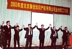2003年,對于集佳來說,是向國際化企業(yè)邁進(jìn)的關(guān)鍵一年,集佳人上下同心、拼搏奮進(jìn),戰(zhàn)勝了“非典”對我們的巨大挑戰(zhàn)和代理機(jī)構(gòu)放開的嚴(yán)峻考驗(yàn),再次成為商標(biāo)代理量的全國第一。集佳合伙人會議主席于澤輝在2003年度工作報(bào)告中,詳細(xì)闡述了集佳在過去的一年里取得的成績和進(jìn)步,按部門總結(jié)了2003年工作的優(yōu)勢和不足,并詳細(xì)分析了行業(yè)前景、國際環(huán)境和集佳的優(yōu)勢與發(fā)展?jié)摿?,使集佳人對?年內(nèi)把集佳發(fā)展成為世界前100名知識產(chǎn)權(quán)代理機(jī)構(gòu)的目標(biāo)充滿信心。