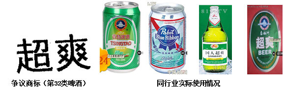 申請理由和法律依據(jù):自上世紀(jì)90年代中期開始,“超爽”作為描述啤酒口味的詞匯,在啤酒行業(yè)內(nèi)廣泛使用,故“超爽”成為僅僅直接表示了指定使用商品的風(fēng)格特點用語,不得作為商標(biāo)注冊。為保障行業(yè)內(nèi)的有序競爭,申請人依據(jù)修改前的《商標(biāo)法》第十條第二款等規(guī)定,請求撤銷爭議商標(biāo)的注冊。被申請人答辯稱:爭議商標(biāo)為被申請人獨(dú)創(chuàng),并非啤酒行業(yè)通用名稱,也不是國家標(biāo)準(zhǔn)所規(guī)范的表示啤酒口感的描述性文字,故應(yīng)予維持注冊。