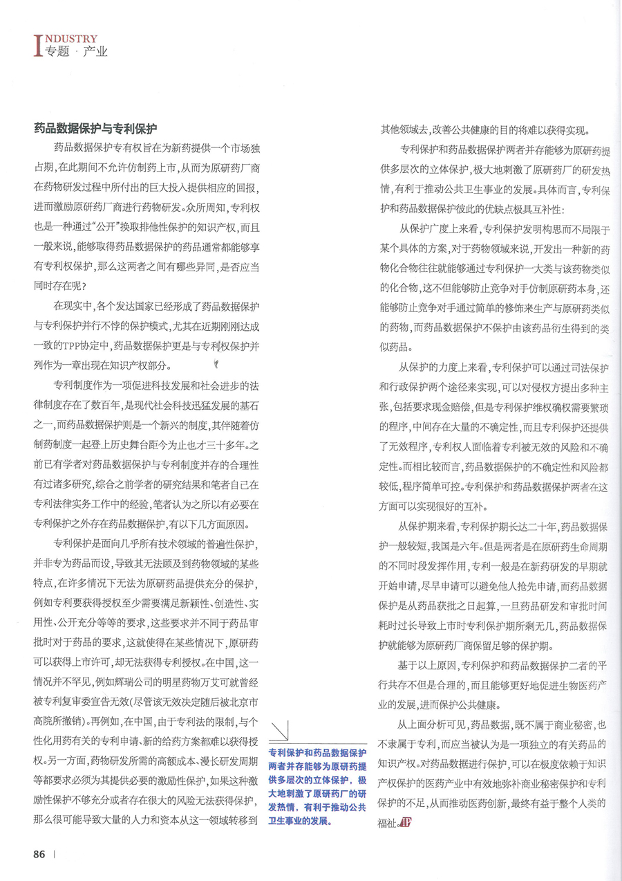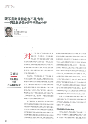 集佳文章《既不是商業(yè)秘密也不是專利--藥品數(shù)據(jù)保護若干問題的分析》在《中國知識產(chǎn)權(quán)》發(fā)表