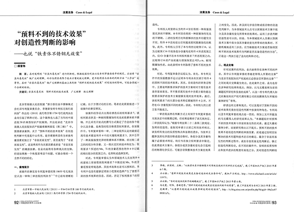 集佳代理人文章《“預料不到的技術效果”對創(chuàng)造性判斷的影響--也說鐵素體不銹鋼無效案》在《中國發(fā)明與專利》發(fā)表