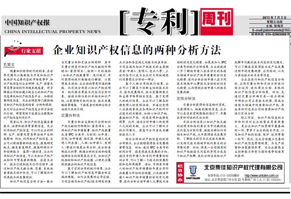 《中國知識(shí)產(chǎn)權(quán)報(bào)》:企業(yè)知識(shí)產(chǎn)權(quán)信息的兩種分析方法