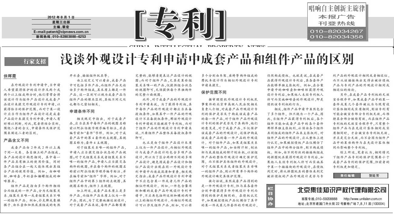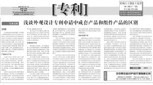 《中國(guó)知識(shí)產(chǎn)權(quán)報(bào)》:淺談外觀設(shè)計(jì)專利申請(qǐng)中成套產(chǎn)品和組件產(chǎn)品的區(qū)別