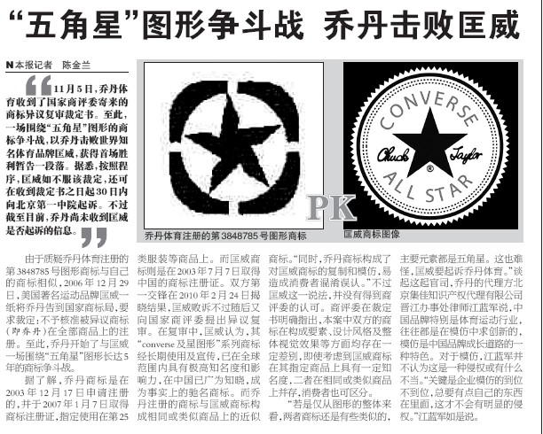 《海峽都市報》:“五角星”圖形爭斗戰(zhàn) 喬丹擊敗匡威