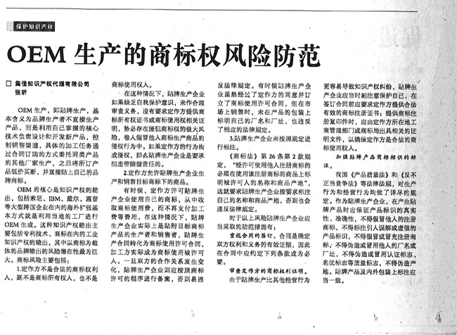 《國際商報(bào)》:OEM生產(chǎn)的商標(biāo)權(quán)風(fēng)險(xiǎn)防范