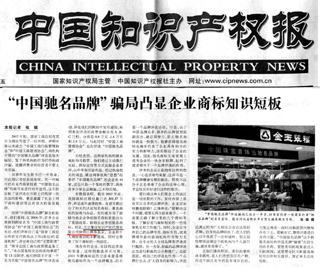 《中國知識(shí)產(chǎn)權(quán)報(bào)》:"中國馳名品牌"騙局凸顯企業(yè)商標(biāo)知識(shí)短板