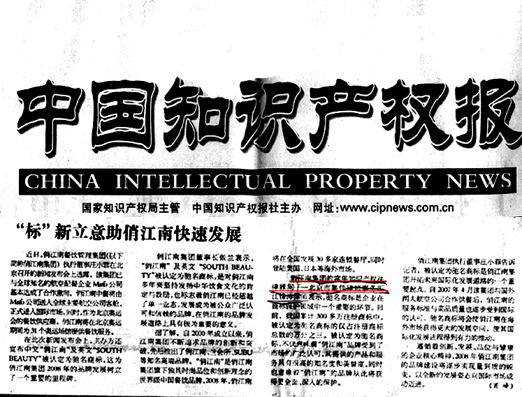 《中國知識(shí)產(chǎn)權(quán)報(bào)》:"標(biāo)"新立意助俏江南快速發(fā)展