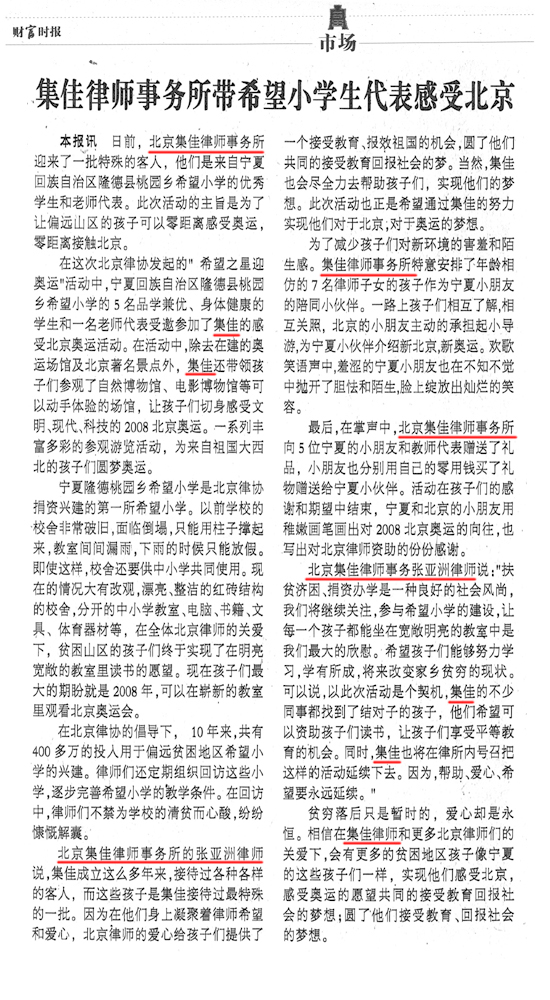 《財富時報》:集佳律師事務(wù)所帶領(lǐng)希望小學(xué)代表感受北京