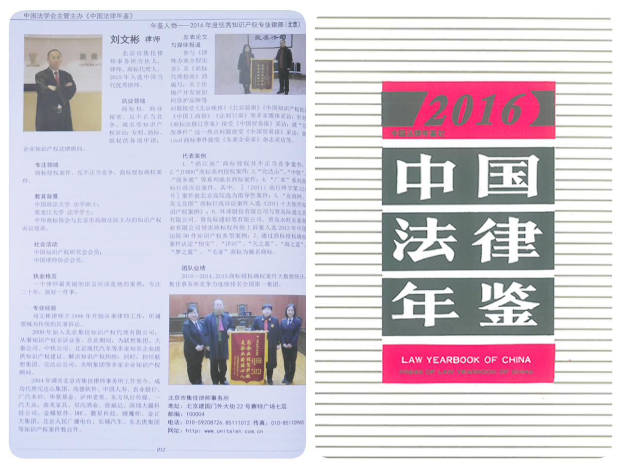 日前,由中國(guó)法學(xué)會(huì)主辦的《2016中國(guó)法律年鑒》正式出版發(fā)行,集佳律師事務(wù)所合伙人劉文彬律師入選“年鑒人物——2016年度優(yōu)秀知識(shí)產(chǎn)權(quán)專業(yè)律師”。