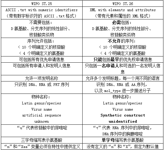 現(xiàn)將WIPO ST.25和WIPO ST.26的主要區(qū)別列舉如下: