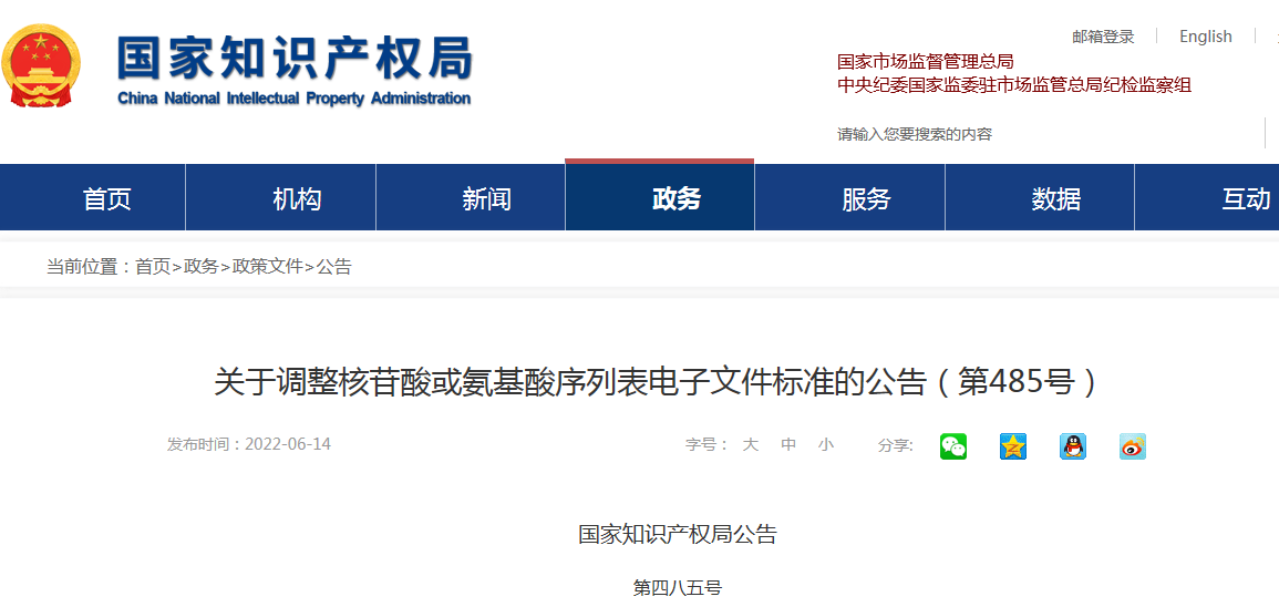 國家知識產(chǎn)權(quán)局(CNIPA)于2022年6月14日發(fā)布了“關(guān)于調(diào)整核苷酸或氨基酸序列表電子文件標(biāo)準(zhǔn)的公告(第485號)”,自2022年7月1日起,向國家知識產(chǎn)權(quán)局提交的國家專利申請和PCT國際申請,專利申請文件中含有序列表的,該序列表電子文件應(yīng)符合WIPO ST.26標(biāo)準(zhǔn)要求。此外,專利申請人以電子形式提交國家專利申請,在提交符合WIPO ST.26標(biāo)準(zhǔn)的序列表電子文件時(shí),為核算說明書附加費(fèi)用,應(yīng)同時(shí)提交一份PDF格式的序列表文件。