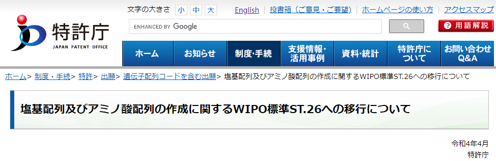 日本專利局(JPO)也進(jìn)行了公告,要求自2022年7月1日起向JPO提交的國家專利申請和PCT國際申請的序列表電子文件應(yīng)符合WIPO ST.26標(biāo)準(zhǔn)要求。