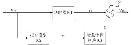 例如,在下述一件美國(guó)專利申請(qǐng)中,公開了一種信號(hào)處理辦法,通過預(yù)設(shè)的擬合模型擬合計(jì)算出輸入信號(hào)的擬合幅度,對(duì)擬合幅度進(jìn)行判斷并根據(jù)判斷結(jié)果進(jìn)行處理得到對(duì)應(yīng)的增益信號(hào),基于增益信號(hào)對(duì)延時(shí)處理輸入信號(hào)得到的延時(shí)信號(hào)進(jìn)行處理得到的輸出信號(hào)。通過上述結(jié)構(gòu)簡(jiǎn)單的信號(hào)處理裝置及系統(tǒng)進(jìn)行信號(hào)處理,不僅計(jì)算量小,而且還能提高處理信號(hào)的效率和處理效果。具體結(jié)構(gòu)請(qǐng)參見下述附圖。