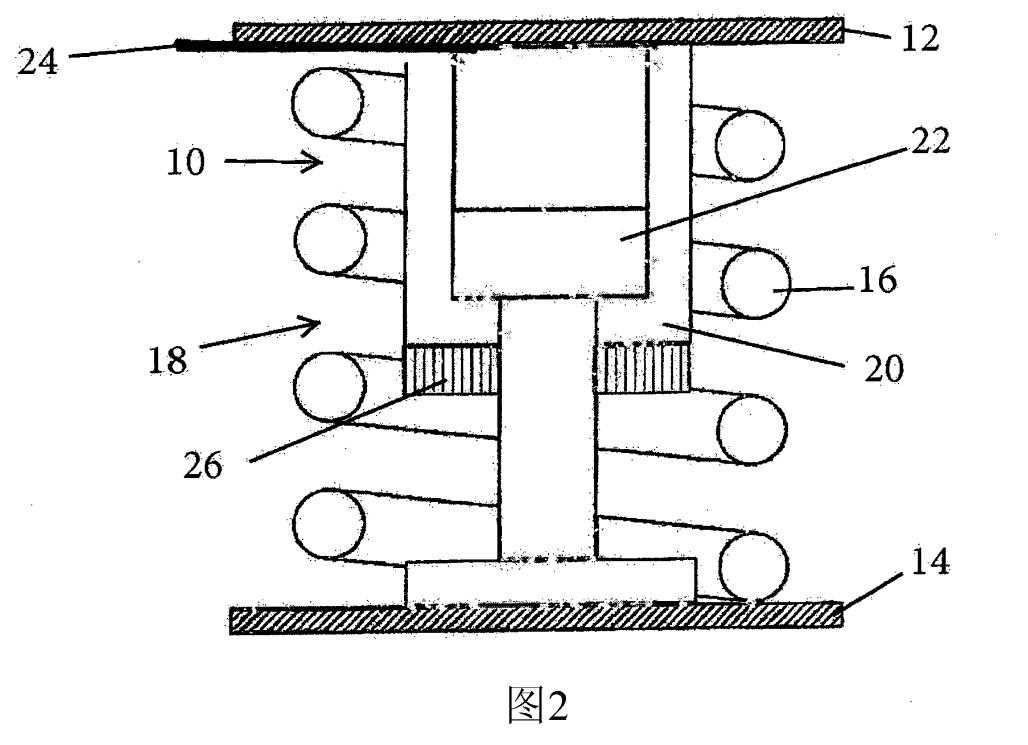 然而,在對比文件1中活塞組件的上表面不可能到達彈簧的上端部。因為彈簧的上端部支承在車體上,所以活塞組件不可能到達車體。也就是說,在對比文件1中,車體實質(zhì)上在任何時間都是通過彈簧支承在轉(zhuǎn)向架上,活塞元件僅起輔助作用。換言之,即使活塞組件進行提升,車體仍舊通過彈簧支承在轉(zhuǎn)向架上。彈簧在受力時會壓縮,在釋力時會伸長,顯然,在對比文件1中,在乘客登上和離開或者加載和卸載時不可能實現(xiàn)剛性表現(xiàn)。