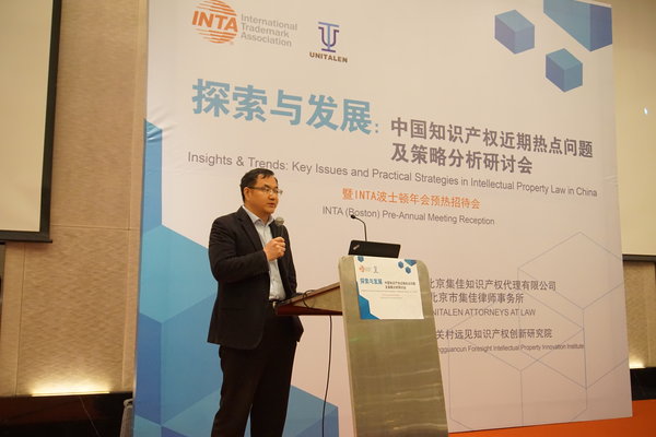 隨后,李永波先生作為主辦方INTA代表發(fā)言。他首先感謝集佳多年來對INTA相關(guān)工作的大力支持,同時(shí)他還表示,INTA 在近幾年與中國的聯(lián)系越來越密切,這都離不開所有業(yè)內(nèi)人士和專家們的關(guān)注與支持,在此向所有同行以及業(yè)界人士表達(dá)誠摯的謝意。李永波先生介紹,2019年INTA第141屆年會(huì)活動(dòng)將于5月18~22日在美國波士頓舉行,希望通過本次預(yù)熱活動(dòng),使國內(nèi)的代理機(jī)構(gòu)對國際商標(biāo)協(xié)會(huì)有更深入的了解,同時(shí)希望廣大企業(yè)和業(yè)界同仁積極關(guān)注并參與INTA年會(huì)活動(dòng)。