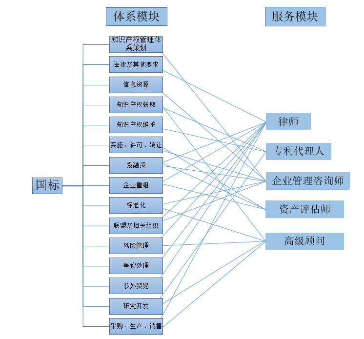 第一種鑒于其特殊情況,雖然市場占比較高,本文不做討論,而第二種情況,企業(yè)和咨詢機(jī)構(gòu)在構(gòu)建體系過程中,人力和物力量投入最大的三個模塊分別是管理現(xiàn)狀診斷、構(gòu)建知識產(chǎn)權(quán)管理體系、培訓(xùn)和運(yùn)行,涉及到的服務(wù)人員有咨詢師、律師、專利代理人、資產(chǎn)評估師。而培訓(xùn)和運(yùn)行模塊中的培訓(xùn)模塊,包括管理培訓(xùn)子模塊9個課時,知識產(chǎn)權(quán)基礎(chǔ)子模塊3個課時,專利維護(hù)子模塊1個課時、專利撰寫子模塊2個課時,專利保護(hù)和信息利用子模塊3個課時,知識產(chǎn)權(quán)運(yùn)營子模塊1個課時,知識產(chǎn)權(quán)保密管理子模塊1個課時,知識產(chǎn)權(quán)風(fēng)險規(guī)避子模塊1個課時。