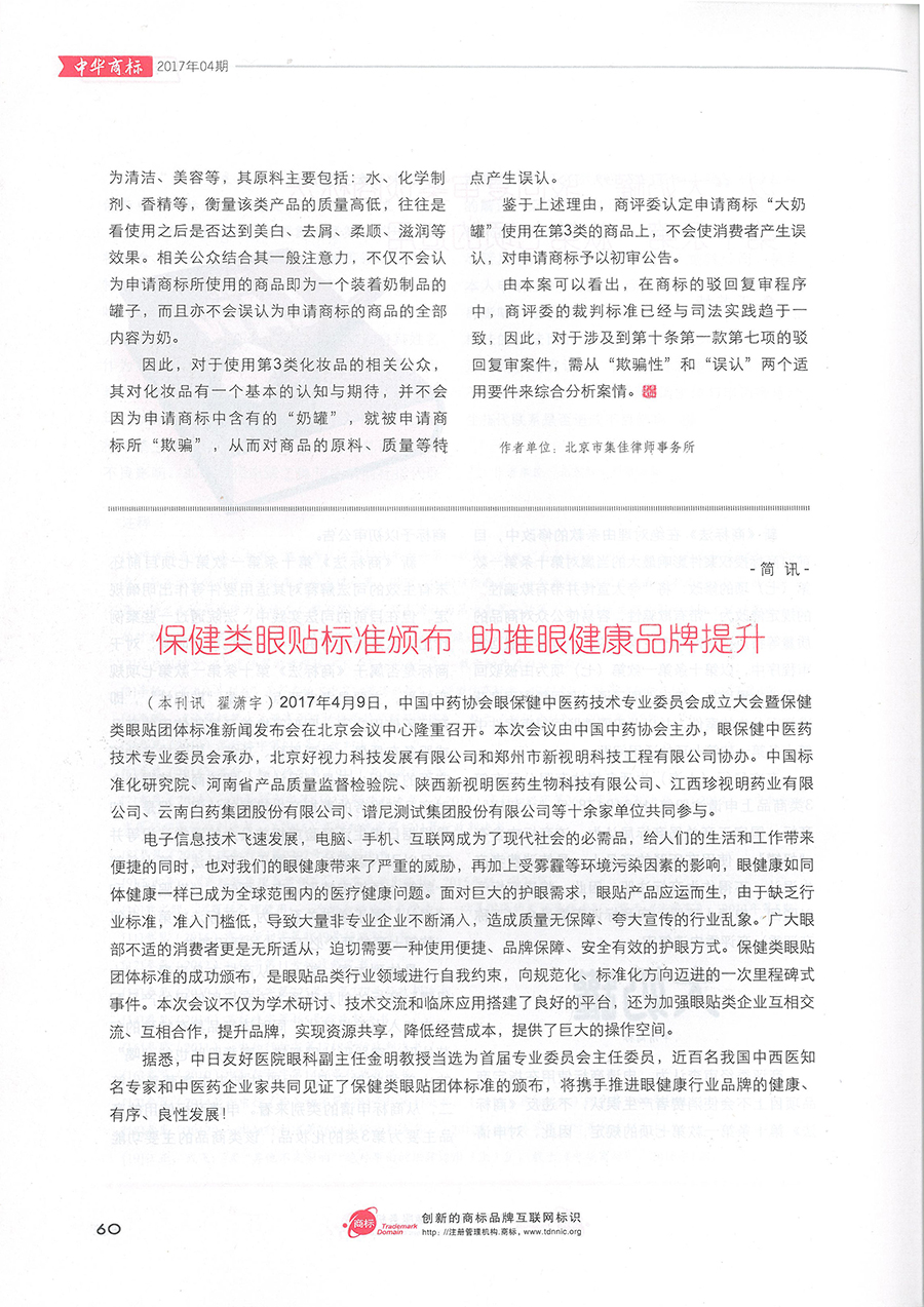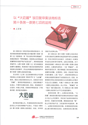 集佳文章《以“大奶罐”駁回復審案談商標法第十條第一款第七項的適用》在《中華商標》發(fā)表