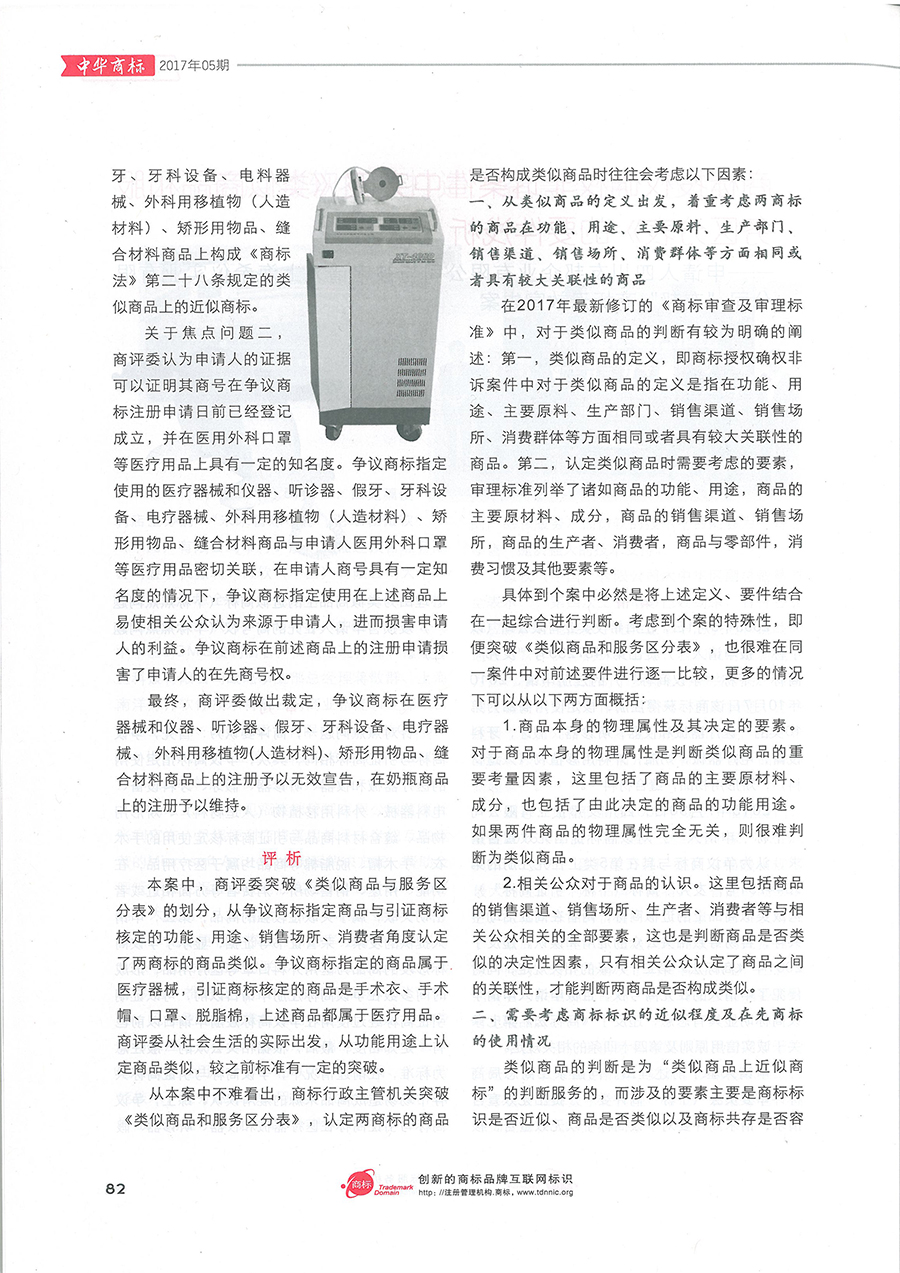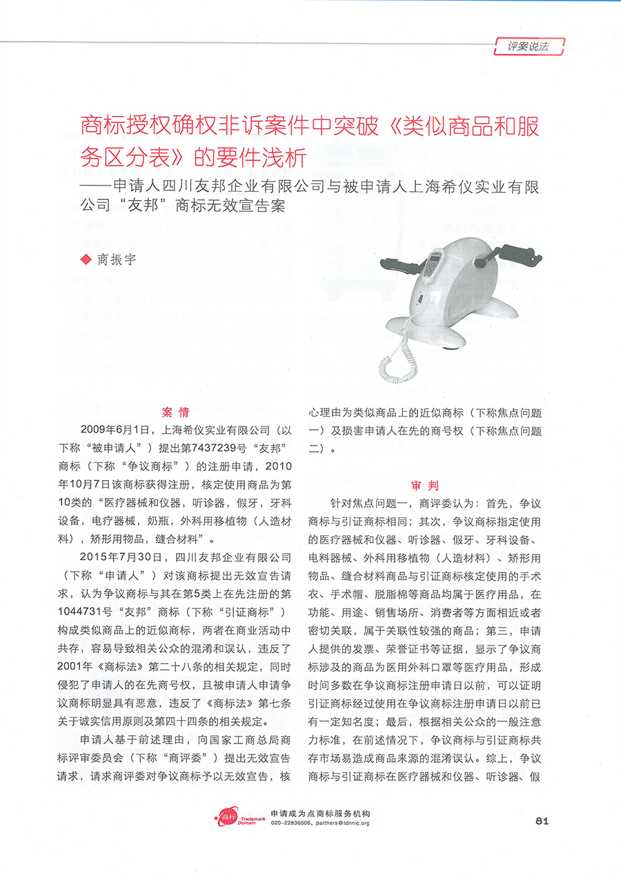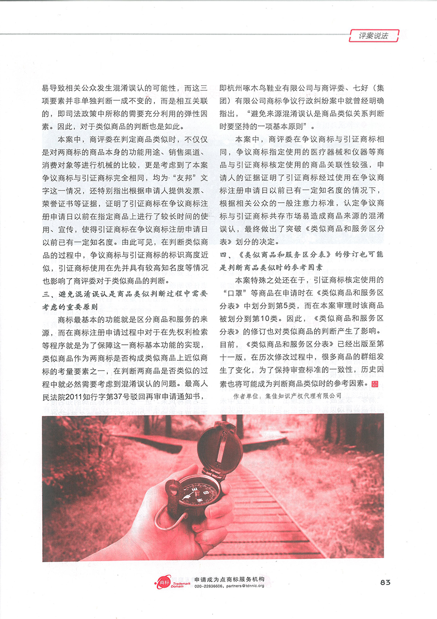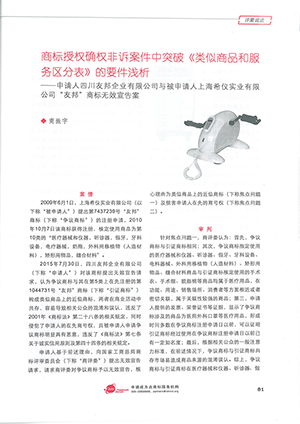 集佳文章《商標(biāo)授權(quán)確權(quán)非訴案件中突破<類似商品和服務(wù)區(qū)分表>的要件淺析》在《中華商標(biāo)》發(fā)表