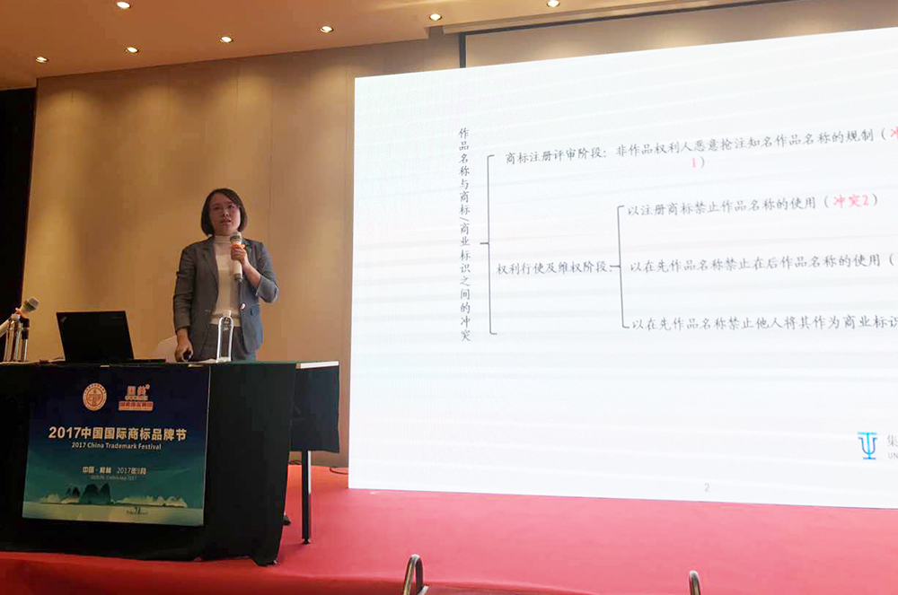 ▲侯玉靜律師通過總結(jié)近年來審判結(jié)果,闡述作品名稱與商標的權(quán)利沖突及解決