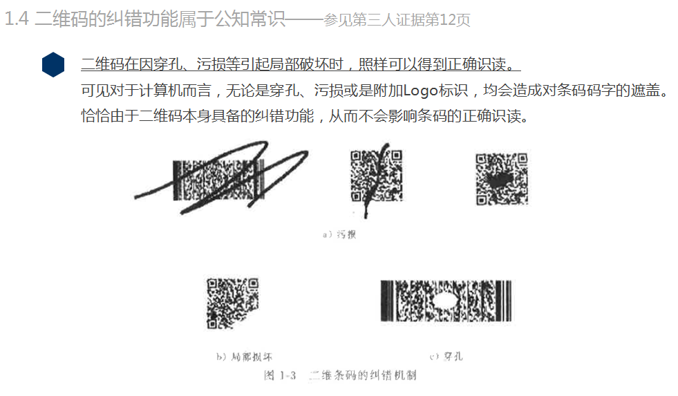 最后,關(guān)于二維碼的成功,以至于成為當(dāng)今商業(yè)社會最為重要的流量入口,這一方面要?dú)w功于二維碼本身加入了Reed-Solomon糾錯算法,為其廣泛傳播奠定了基礎(chǔ);另一方面則要?dú)w功于國家的高度重視,以及騰訊、阿里等互聯(lián)網(wǎng)科技公司所做出的不懈努力。然而,這與涉案專利并無關(guān)聯(lián)。