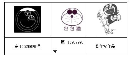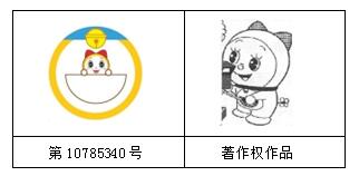 結(jié)合前文所引案例及案例一、二來(lái)看,這幾組案例的作品均為知名漫畫(huà)《哆啦A夢(mèng)》中的主要角色,哆啦A夢(mèng)及哆啦美。由于該作品在中國(guó)已經(jīng)連續(xù)播放并傳播了多年,其漫畫(huà)形象影響了80后、90后甚至是00后的多代人。對(duì)于中國(guó)大陸相關(guān)公眾而言,不僅認(rèn)識(shí)哆啦A夢(mèng)及哆啦美的全貌,而其對(duì)其具有代表意義的顏色、眼睛的位置、鈴鐺、口袋也十分熟悉,并將其與漫畫(huà)《哆啦A夢(mèng)》建立聯(lián)系。而在本文開(kāi)頭所引案例中的被異議商標(biāo),其選擇了哆啦美的耳朵、哆啦A夢(mèng)頭部的上半部分、哆啦A夢(mèng)的鈴鐺及其日語(yǔ)表現(xiàn)等多個(gè)具有突出特點(diǎn)的部分而組合;案例一中的第10520690號(hào)系爭(zhēng)商標(biāo)由鈴鐺、口袋、哆啦A夢(mèng)的頭部等具有突出特點(diǎn)的部分組成;第15959976號(hào)系爭(zhēng)商標(biāo)則以哆啦A夢(mèng)的頭部為圖形部分;案例二種的系爭(zhēng)商標(biāo)選用哆啦A夢(mèng)的藍(lán)色、口袋、鈴鐺以及哆啦美的黃色和頭部等具有突出特點(diǎn)的部分組成。這些商標(biāo)雖然整體與漫畫(huà)《哆啦A夢(mèng)》中哆啦A夢(mèng)及哆啦美的整體形成差異明顯,但是其均選用了這些作品中具有突出顯著性和明確指向性的部分,而相關(guān)公眾看到這些要素后,極易聯(lián)想到享有著作權(quán)的漫畫(huà)《哆啦A夢(mèng)》的相關(guān)形象。在這幾個(gè)案例中,不論是商標(biāo)局的決定書(shū)還是商評(píng)委的裁定書(shū)中均有類(lèi)似的表述,即“系爭(zhēng)商標(biāo)與異議人引證的上述漫畫(huà)作品中的卡通形象在設(shè)計(jì)構(gòu)思、表現(xiàn)手法和視覺(jué)效果等方面相近,又構(gòu)成實(shí)質(zhì)性近似”。