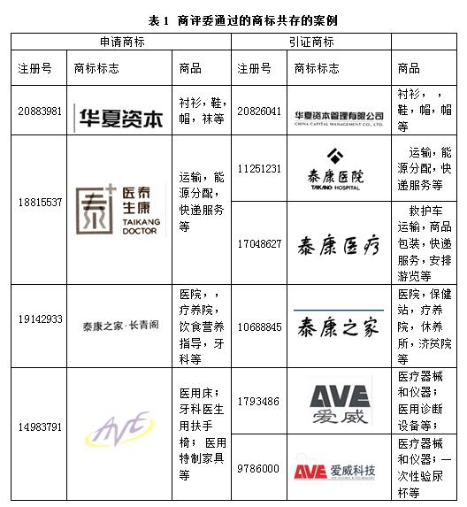 那么究竟多么近似的商標(biāo)可以被商評委準(zhǔn)予共存呢?為了給大家一個感性認(rèn)識,筆者舉幾個成功共存的例子供大家參考(請見表1)。