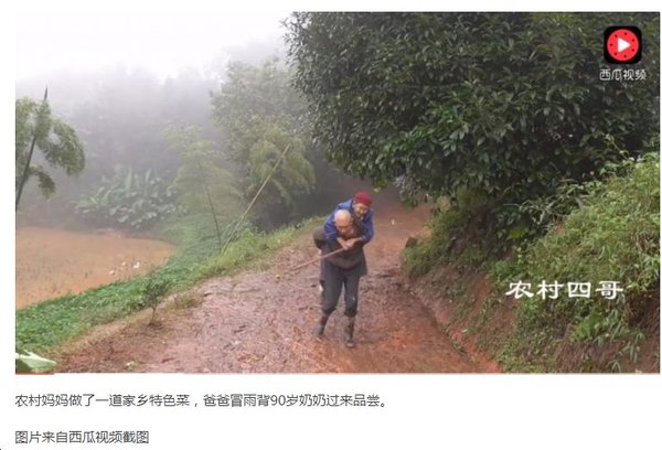 異議人對于“農(nóng)村四哥”商標的最早使用可以追溯到2017年10月23日,異議人一方上傳的標題為《農(nóng)村媽媽做了一道家鄉(xiāng)特色菜,爸爸冒雨背90歲奶奶過來品嘗》的視頻,在西瓜視頻上被數(shù)十萬人點擊播放。截至2019年1月,該視頻已經(jīng)有48萬次的觀看,258條評論,1974次轉(zhuǎn)發(fā),1072次收藏和221.7萬次的推薦。